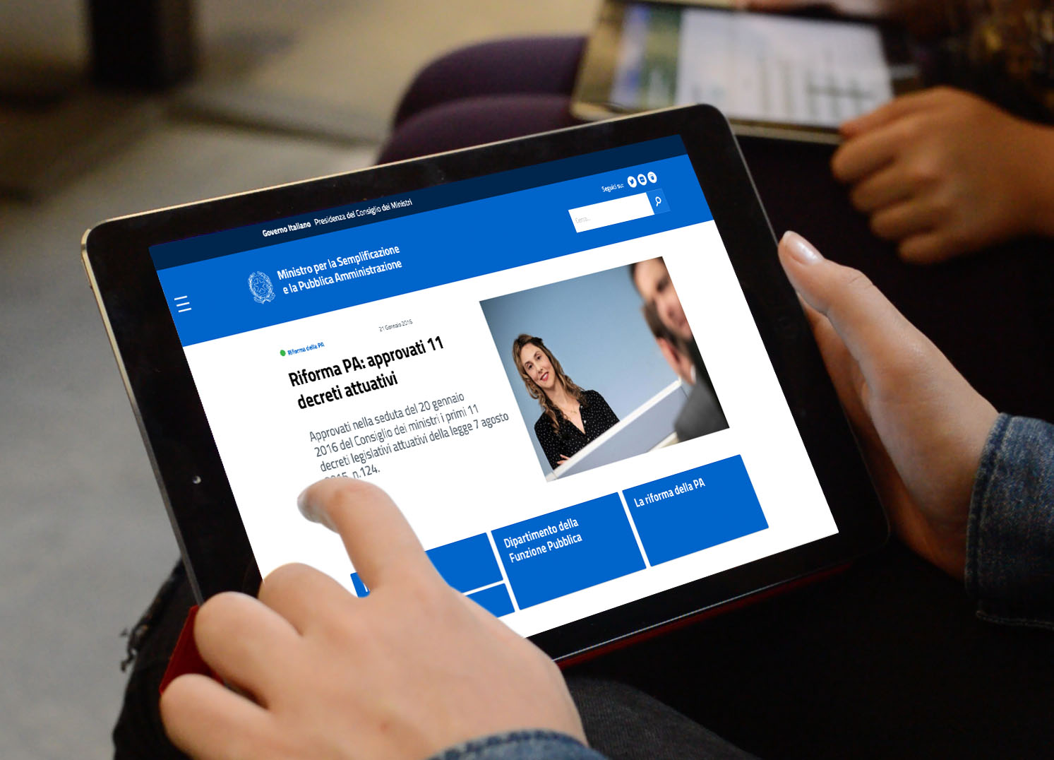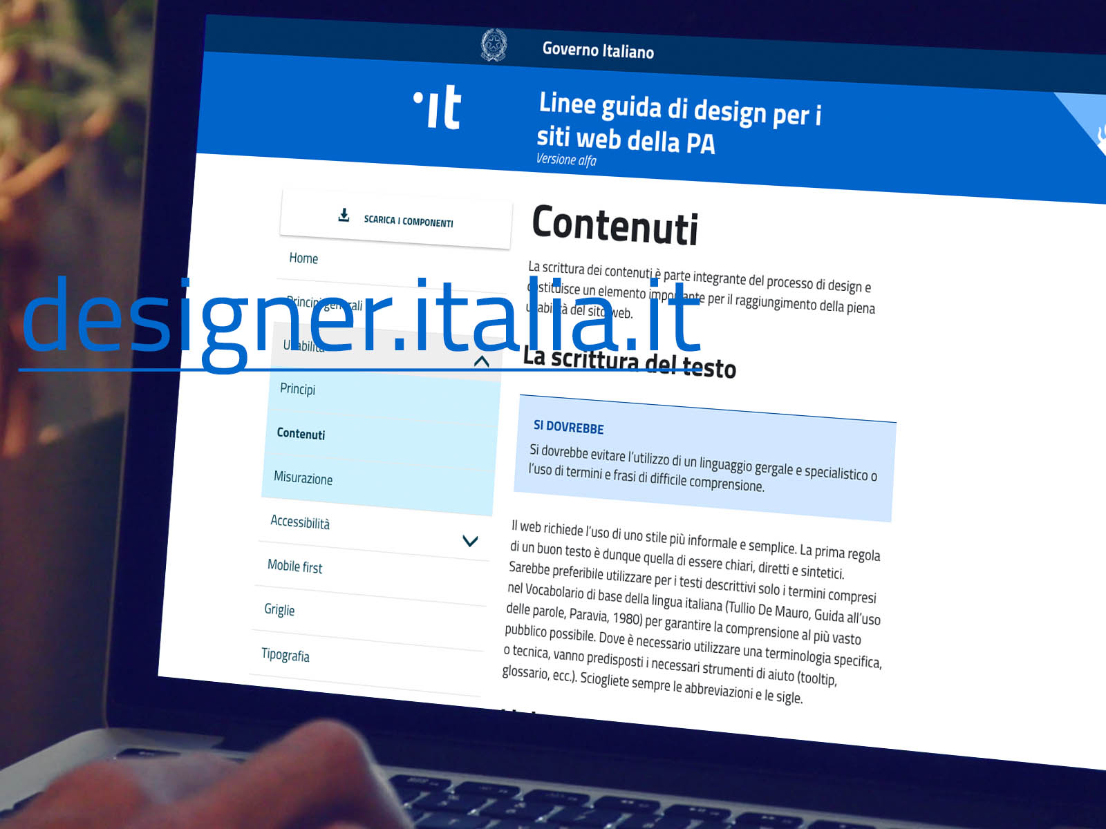 I contenuti delle linee guida sono diffusi in modalità open source completi del relativo codice. Per la parte design, tre elementi costituiscono la base dell’identità visiva: tipografia, colori, griglia, Le prime applicazioni delle Linee guida hanno riguardato il sito web del Governo e del Ministero della Funzione Pubblica.